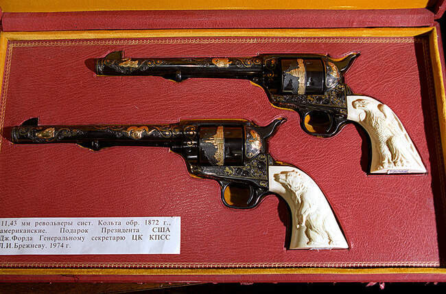 Револьверы системы Кольта, подаренные президентом США Джеральдом Фордом Генеральному секретарю ЦК КПСС Леониду Брежневу в 1974 году.