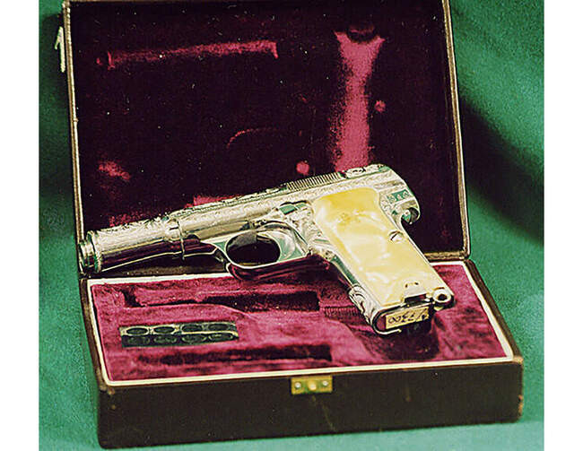 9 мм испанский пистолет системы «Астра», подаренный генеральному секретарю ЦК КПСС Леониду Брежневу от МВД СССР.
