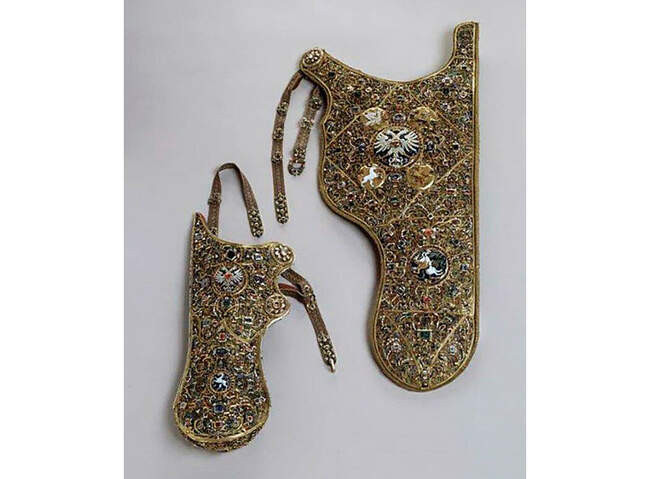 Полный комплект парадных доспехов на коня и всадника работы немецкого мастера 16 века Лохнера был подарен русскому царю Федору Иоанновичу польским королем Стефаном Баторием.