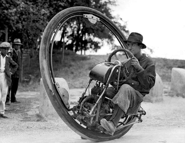 А вот история орбитального колеса не так скучна и однообразна, как может показаться на первый взгляд. На самом деле принцип подобной конструкции восходит еще к моноциклам, которые были популярны в конце XIX — начале XX века. Тогда данный вид транспорта считался едва ли не самым перспективным, при этом большая часть запатентованный в тот период изобретений подобного типа являла собой колесо большого размера без ступицы, внутри которого располагалось водительское место.