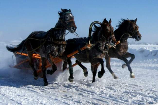 Найти ответ на данный вопрос в интернете будет не просто. Однако, скорее всего человек рано или поздно наткнётся на одно странное, но якобы наукоемкое объяснение о том, что лошади из-за особенностей своей биологии поворачивают голову в ту сторону, с которой они начинают движение. В этом случае возникает закономерный вопрос: почему, если виной всему биология, головы выворачивают только левые и правый «пристяжный» (именно так называют боковых лошадей тройки), а центральная лошадь – «коренник», смотрит строго прямо. Она по всей видимости начинает движение сразу с двух ног с прыжка?