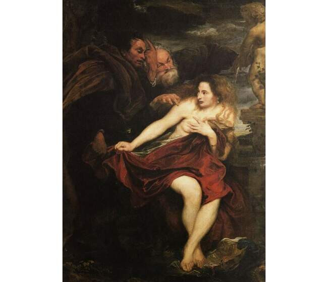 Одно из немногих изображений Сусанны, где художник не открывает её грудь. Картина Антониса ван Дейка.