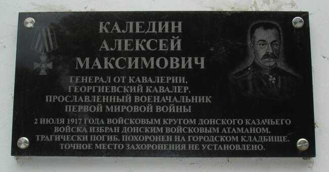 Памятная доска А. Каледину на кладбище в Новочеркасске.