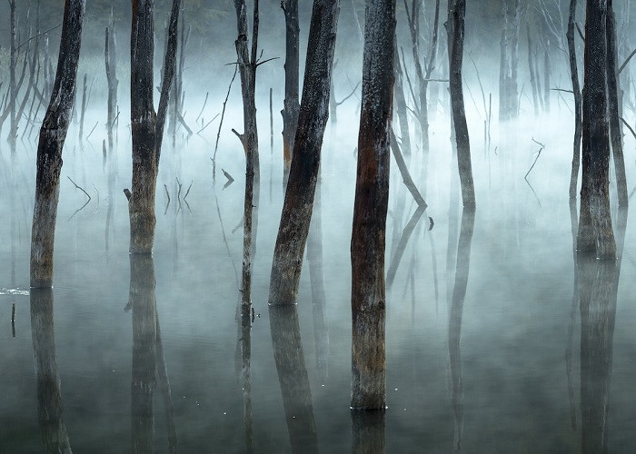 15. Утренний туман среди мертвых деревьев на снимке «Холодный и туманный»