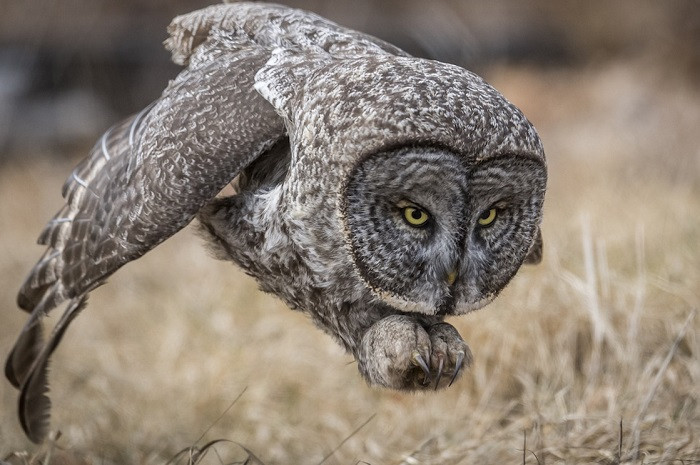 19. Сова во время охоты на грызунов на снимке «Бородатая неясыть»