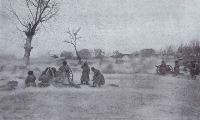 Артподготовка перед началом отступления и перегруппировки русской армии во время сражения под Мукденом.