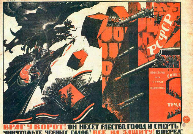 «Враг у ворот! Он несет рабство, голод и смерть! Уничтожьте черных гадов! Все на защиту! Вперед!»
