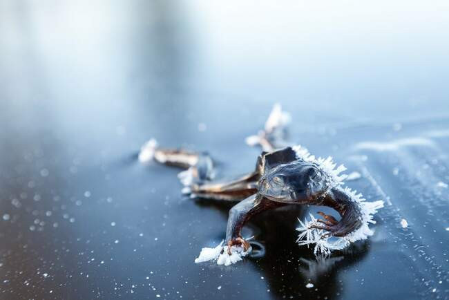 Лягушки с Аляски вида Rana sylvatica, пожалуй, даже переплюнули антарктических рыб. Они буквально вмерзают в лёд зимой, пережидая таким образом холодный сезон, а весной возвращаются к жизни. Подобный «криосон» возможен для них благодаря особому строению печени, увеличивающейся во время спячки в два раза, и сложной биохимии крови.