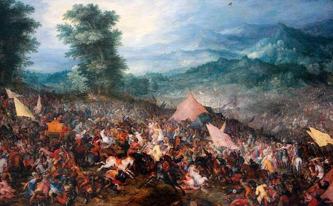 Битва при Гавгамелах на картине Яна Брейгеля Старшего. Дарий вновь ускользнул. Но поверженная Персидская империя лежала у ног македонца. Он беспрепятственно вошел в пять ее столиц в Месопотамии, Персиде и Мидии — Вавилон, Сузы, Пасаргады, Персеполь и Экбатаны, и баснословные сокровища попали в его руки. Многое в этом триумфальном шествии теперь было новым
