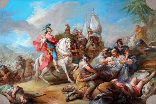 Весной 334 года до н. э. по мосту, наведенному из составленных борт к борту кораблей и плотов, Александр во главе сорокатысячной армии перешел через Геллеспонт (теперь пролив Дарданеллы) в Азию. Первым делом оттуда он поспешил в Трою, с которой для греческого мира было связано так много. Здесь он принес жертву Афине, а также почтил могилу Ахилла. Умастив тело, он состязался с друзьями в беге вокруг памятника.