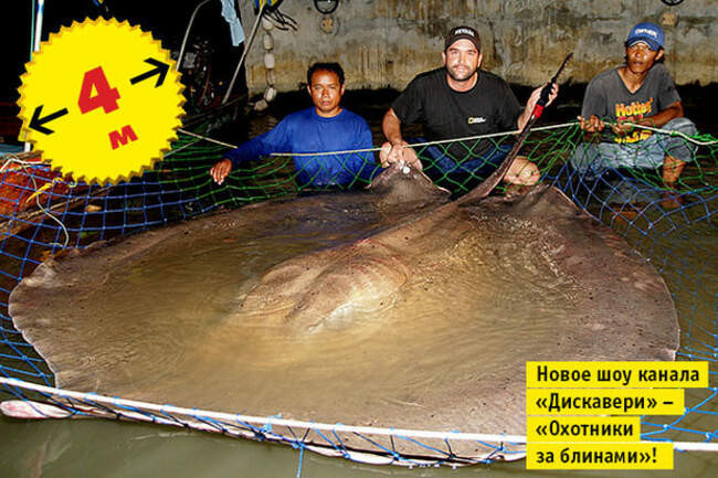 Гигантский пресноводный скат в исключительных случаях достигает 4-метровой длины, так что на фоне малорослых граждан Таиланда скат выглядит особенно выигрышно. Жаль, но маленькие пенсии и недоступное медстрахование привели к тому, что этот скат стал вымирающим видом.