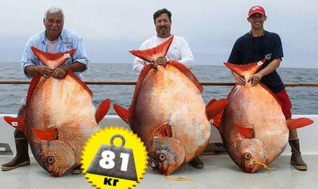 А вот трое других подозрительно везучих рыбаков. Им удалось за день рыбалки поймать у калифорнийского побережья трех солнечных окуней. Едва ли нужно объяснять тебе, какая это невероятная редкость и удача. Каждый такой окунь весит от 56 до 81 кг! Как настоящая женщина! Только его к тому же можно есть.